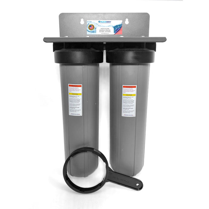 Essential whole house water filtration system delivers filtered, safe water for your whole house. Suits a medium to large house with 2 or more bathrooms on town water at an affordable price. This two-cartridge system has superior micron filter capacity and is essential for safe water to your family home.