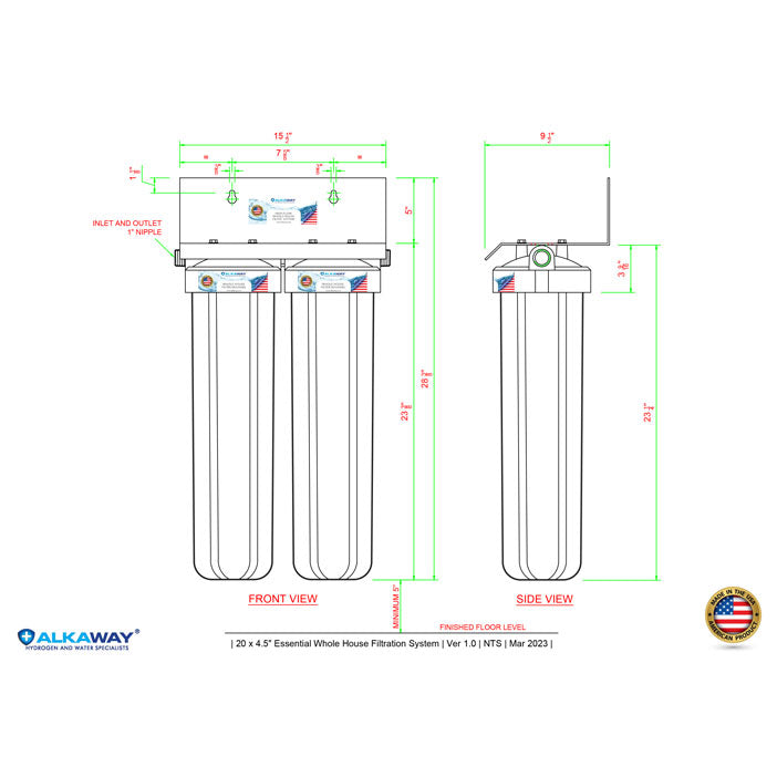 Essential Whole House Filtration System has been designed to be installed at the main water supply line into your house. If you have either 1″ or 3/4″ pipes, then this filtration system will be ideal for you.
