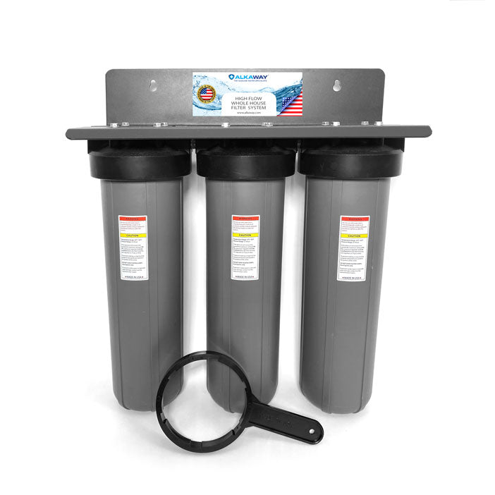 Optimal Whole House Water Filtration System delivers optimum filtered safe water for your whole house. Suits a medium to large house with 2 or more bathrooms on town water at an affordable price. This three-cartridge system has superior sub-micron cartridge capacity and removes most heavy metals and many more contaminants.